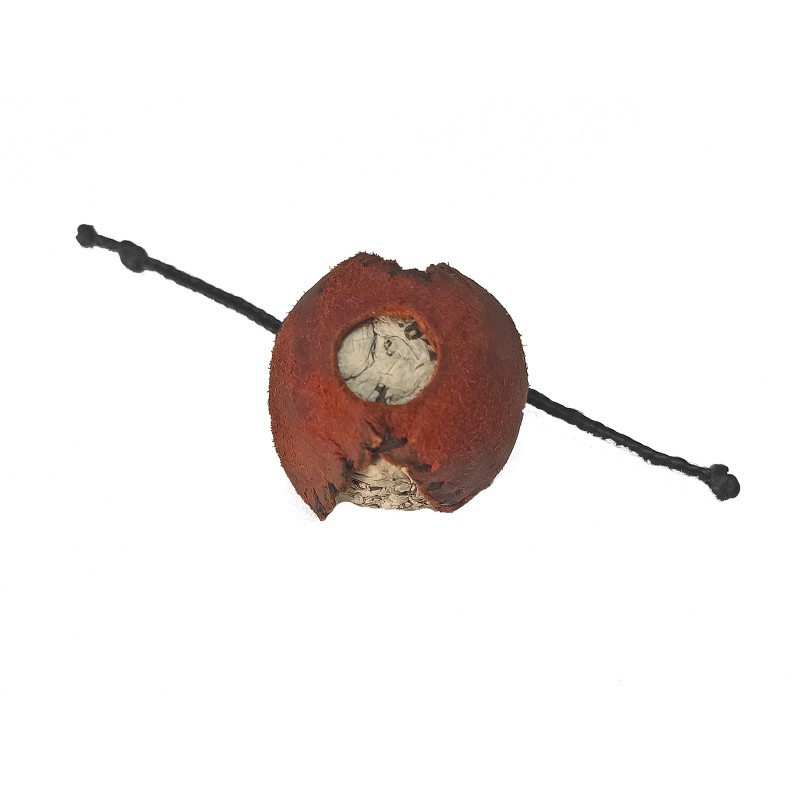 Esposas para palomas en cuerda con esposa de cuero y sujeción de goma. Incluye taco de madera para peso en el cimbel.