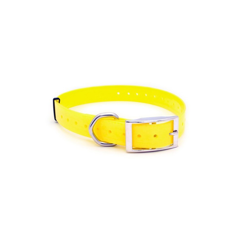 Gracias al grosor reducido de 1,5mm son válidos para equipos Dogtrace, Garmin, etc. Longitud: 70cm COLOR NARANJA FLUOR Poliuretano de máxima calidad. Collares irrompibles. Con mallazo de nylon interior. Fáciles de limpiar. Colores muy vivos. Grabe sus datos en ellos. Ajustables.