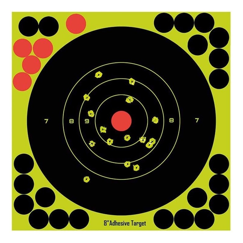 Estas dianas pueden adherirse a cualquier superficie. Al acertar contra la diana el punto de impacto queda marcado con un contorno fluorescente. Ideal para ver con claridad los progresos en la puntería del tirador a larga distancia