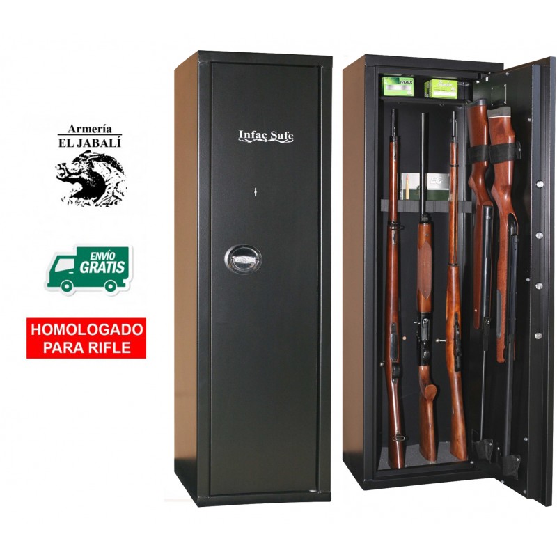 Armario armero homologado para 5 armas largas marca Infac. Certificado + factura de compra. Homologación: NORMA UNE EN 1143-1:2019 GRADO 1 (VÁLIDO PARA RIFLE) Altura Ext.: 1330 mm. Anchura Ext.: 250 mm. Profundidad Ext.: 250 mm. Peso: 53 kgPLAZO DE ENTREGA 5-15 DÍAS LABORALES ENTREGA A PIE DE CALLE ENVÍO GRATIS PENÍNSULA (BALEARES, CANARIAS CEUTA Y...