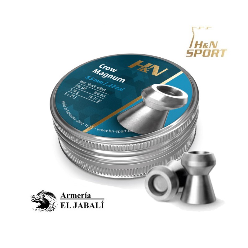 Lata de 200 balines H&N CROW MAGNUM del calibre 5.5 mm.