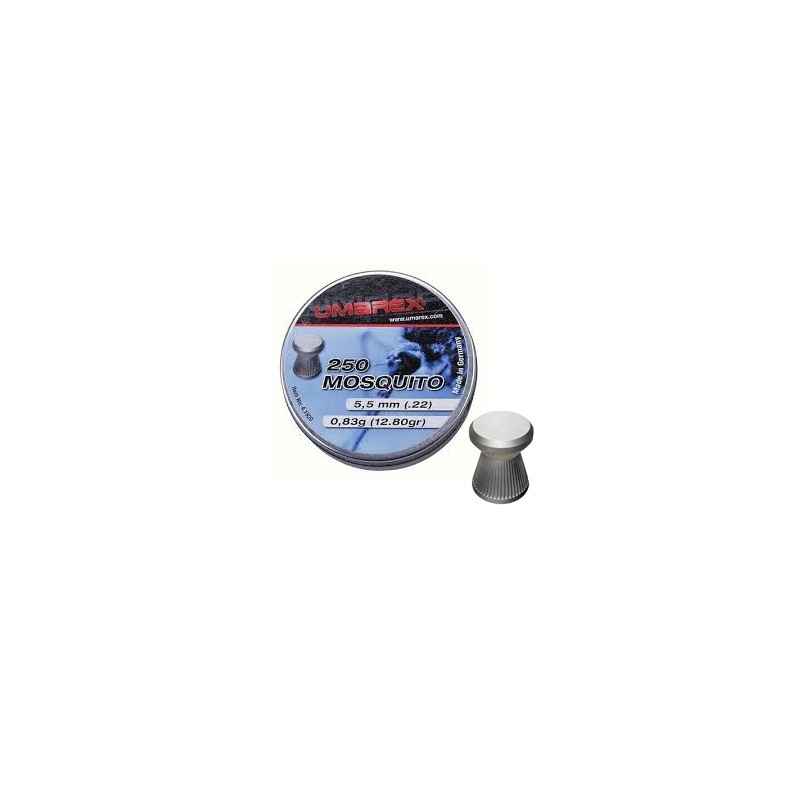 Lata de 250 balines UMAREX MOSQUITO del calibre 5.5mm. Plano y acanalado, la opción clásica para plinking, hobby shooting y pistola de CO2. Cumple todos los requisitos básicos de calidad y precisión. Inmejorable relación precio-rendimiento.
