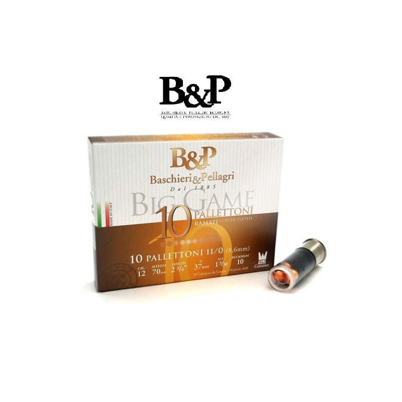 Cartuchos Baschieri & Pellagri diseñados para la caza menor. Especialmente para la caza de paloma, zorzal, perdiz, liebre, conejo, codorniz, tórtola y faisán. Calibre 12 Culote: 10mm Largo: 70mm Cajón de 250 unidades (Recuerde rellenar el campo de más abajo con su nº de permiso de armas y pulsar guardar)