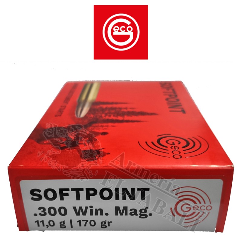 Bala Geco 300 Winchester Magnum 165 grains - Punta de plomo Geco ExpressTrayectoria de vuelo plana y con una transferencia de energía muy rápidaPara disparos a larga distancia