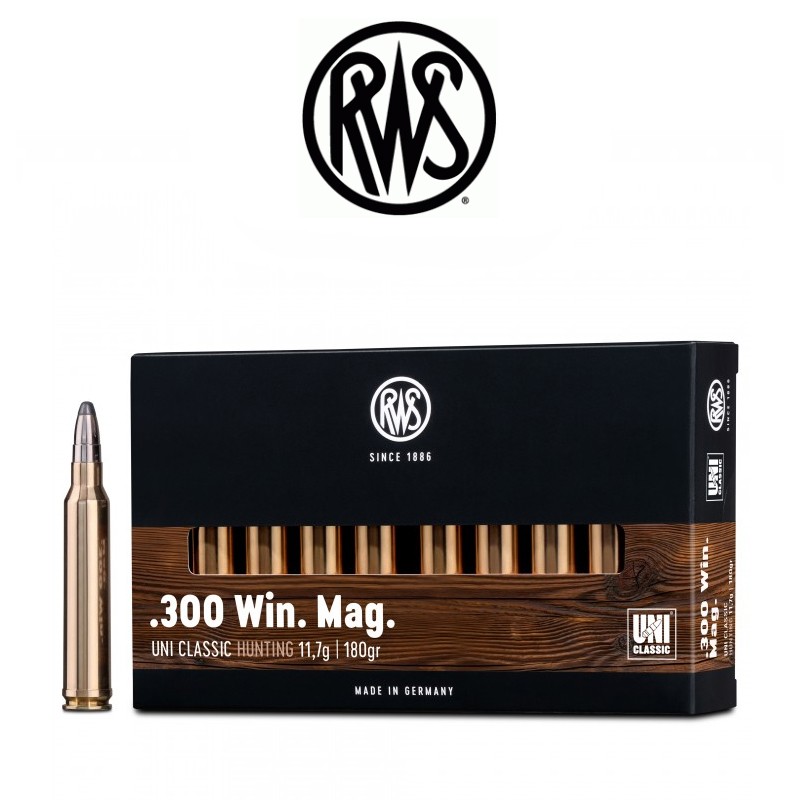 Bala FEDERAL 300 Winchester Magnum JACKETED SOFT POINT 180gr (Punta de plomo) 20 unidades Peso: 180 grains // 11.66 gramos Velocidad: 0 m: 902 m/s 100 m: 837 m/s 200 m: 774 m/s Caída: 50 m: +1,52 cm 100 m: +4,06 cm 200 m: 0 cm 300 m: -17,52 cm 400 m: -51,56 cm 500 m: -104,14 cm