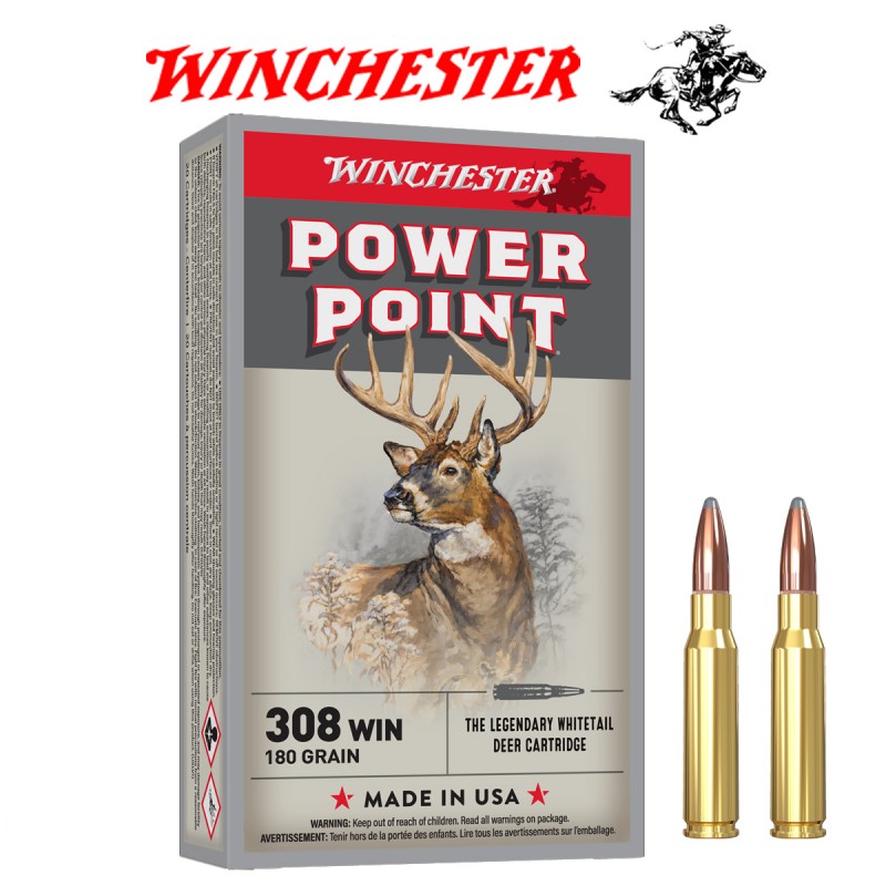 Bala WINCHESTER POWE MAX Calibre 308 Winchester Magnum 180gr (Punta de plomo) 20 unidades Peso: 180 grains // 11.66 gramos