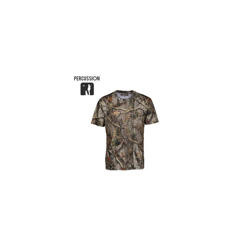 Camiseta de caza con jabalí en camuflaje de la marca Percussion 100% Algodón 180g/m2