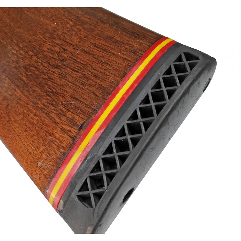 Cantonera de caucho y resistente al desgaste. Excelente para la caza y el tiro. Disponible en Negro.Especificaciones:Grosor: 15 mm Distancia entre agujeros 9 cm Tamaño: 140x49 mm - universal