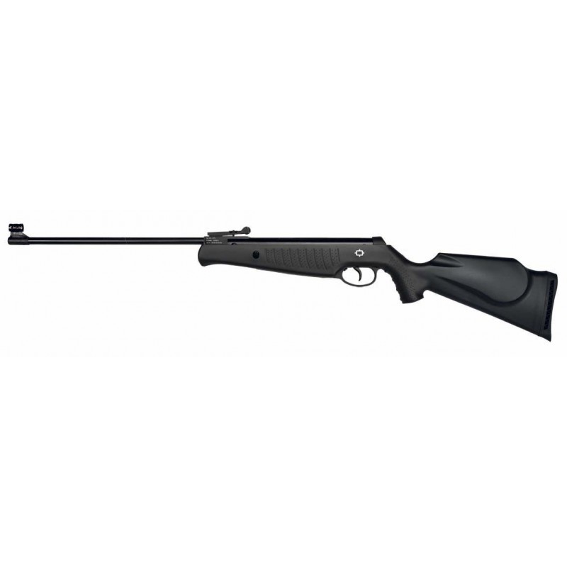 GAMO BLACK 1000 - Carabina ligera y potente con culata ambidiestra sintética de color negro. Incorporagatillo SAT (Smooth Action Trigger) y el culatín SWA (Shock Wave Absorber). (Sintética-Muelle) Longitud: 1100mm Longitud cañón: 450mm Peso 2.5 Kg. Velocidad inicial cal 4.5 mm 305 m/s Velocidad inicial cal 5.5 mm 220 m/s