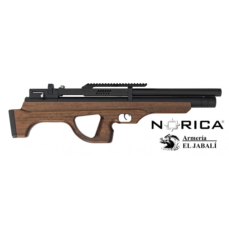 Norica lanza su primera carabina PCP, la Darkbull BP. Con cañón Lothar Walther de 450 mm de largo, la precisión está garantizada. La presión de trabajo del regulador es de 135 Bar (1,959 PSI) y la presión máxima de llenado es de 250 Bar (3,620 PSI). El usuario puede controlar fácilmente la presión revisando el manómetro WIKA codificado por colores. El cañón está enfundado con un Bullbarrel que integra funciones de supresión para mantener a la Dark Bull impresionantemente silenciosa. Incluye un adaptador macho 1/2 UNF para que su rifle sea aún más silencioso. Cuenta con un regulador para proporcionar el máximo de disparos por depósito a una velocidad constante.