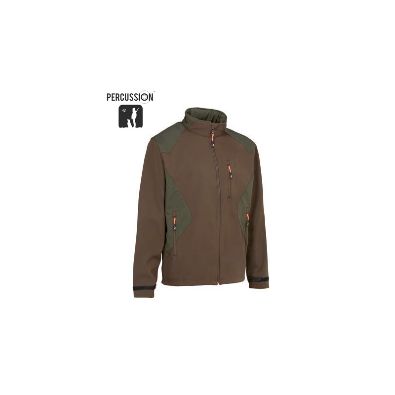 Chaqueta Softshell en color marrón y verde Con logo en pecho 97% poliéster, 3% elastano membrana P.U. laminada, triple capa, impermeable y respirable. 1bolsillo con cremallera en el pecho 2bolsillos manos con cremallera cordón de ajuste capucha integrada en el cuello y morral con forro hermético y lavable (15103naranja y 15122normas CE).