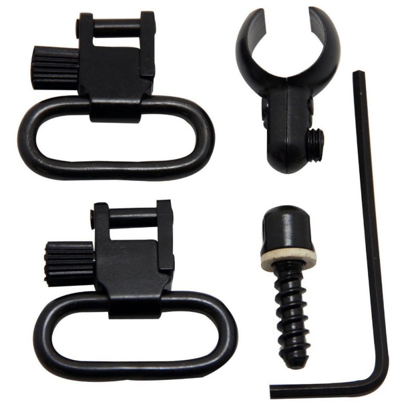 Juego de anillas para colocar una correa portafusil en el rifle Remington 742 Sistema para portar las armas largas con seguridad y rápido desmontaje de la correa portafusil. Juego de anillas portafusil QD de Uncle Mike's con fijación de tirafondo en la trasera y perno giratorio en la delantera. 1" de ancho. Realizadas en acero. Ajuste impecable y un...