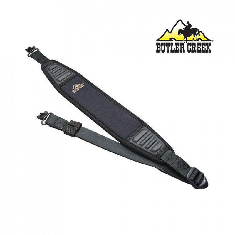 Correa porta armas de NEOPRENO con acabados en cordura. Su forma ergonómica y diseño con neopreno interior permite la mayor comodidad y un agarre perfecto antideslizante. remates muy resistentes de PVC. Color Negro Largo zona acolchada: 37 cm