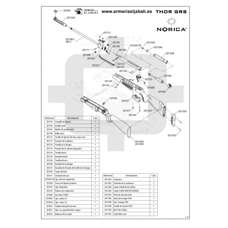 Despiece de carabina Norica THOR GRS de aire comprimido