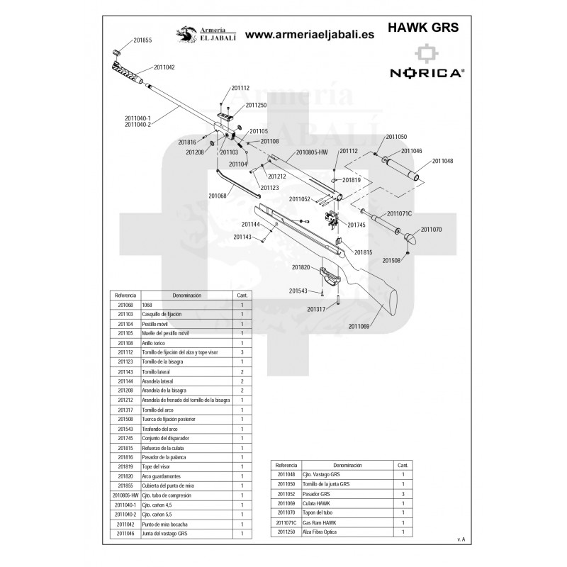 Despiece de carabina Norica HAWK GRS de aire comprimido