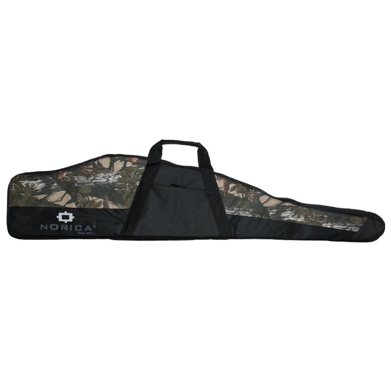 Funda con visor marca NORICA de 132 cm, especialmente diseñada para proteger y transportar su carabina. Lleva doble asa para su transporte y bolsillo exterior con cremallera. En color camuflaje.