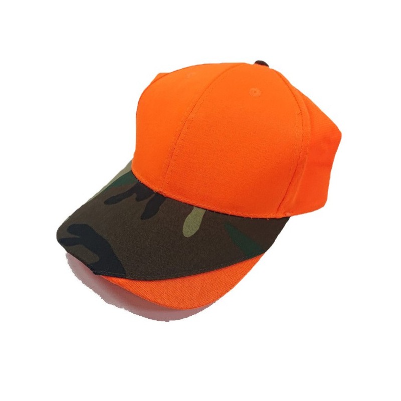 Gorra de adulto en naranja fluor con visera camuflaje.