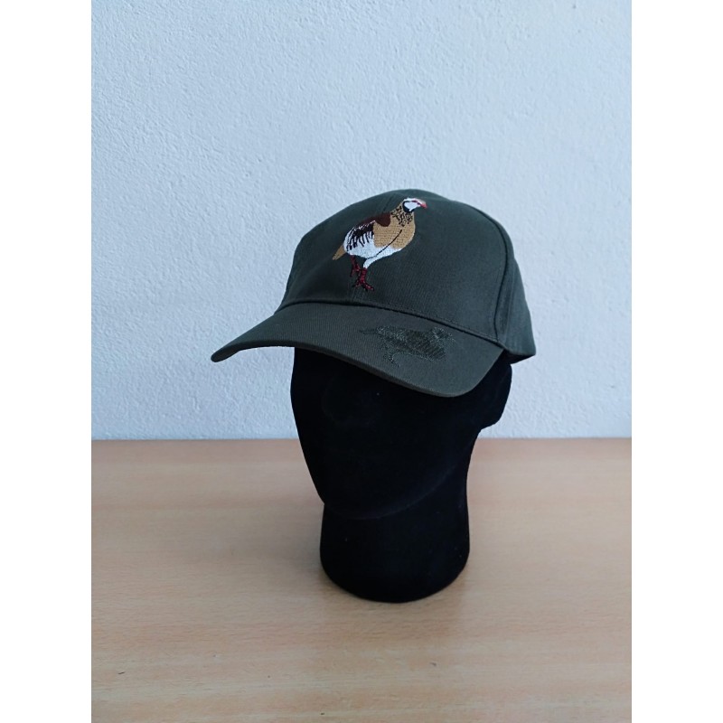 Gorra de caza. Adorno Perdiz bordada, con 2 sombras de perdiz bordadas.