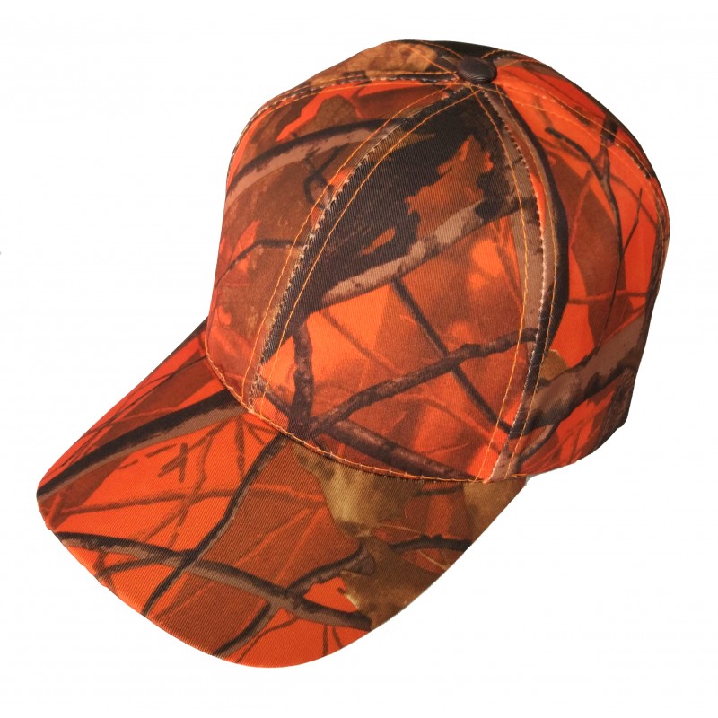 Gorra de caza con camuflaje sobre naranja