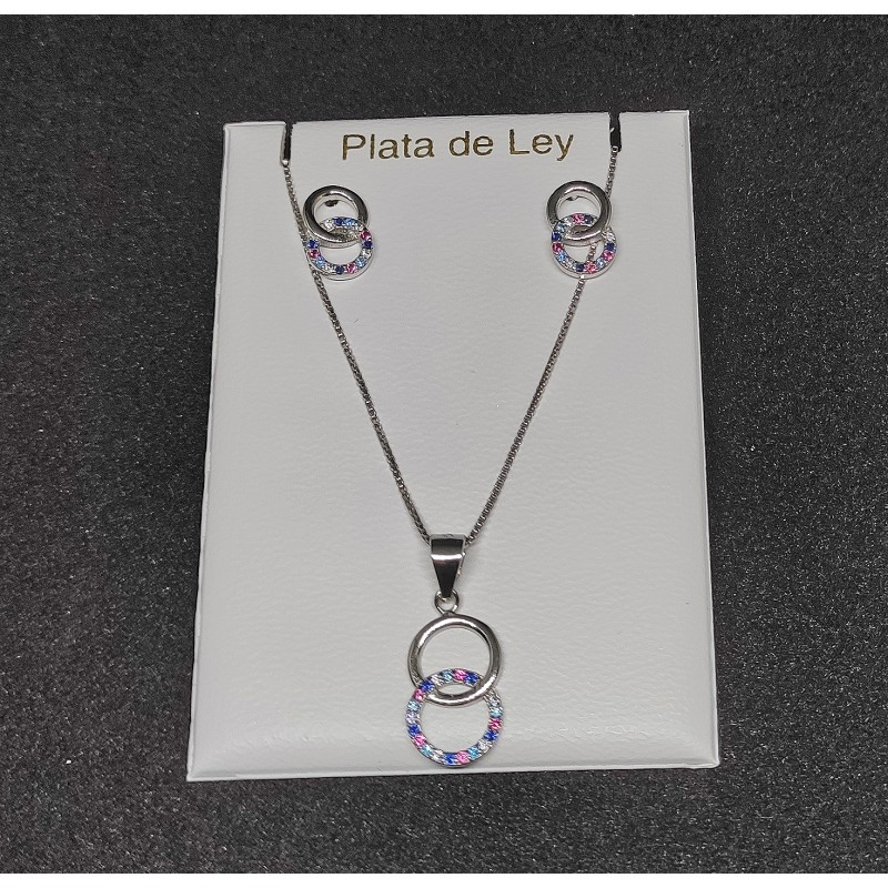 Juego de pendientes y collar en rodio con circonitas de colores