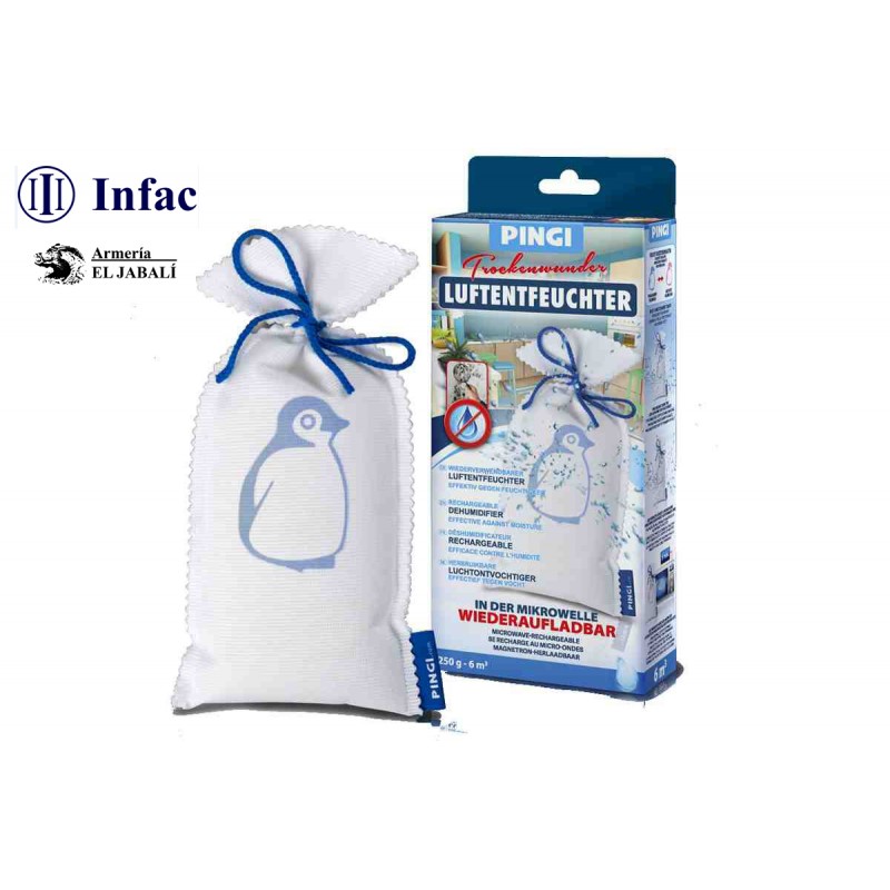 El deshumidificador reutilizable Pingi 250 es muy útil para mantener un nivel adecuado de humedad en espacios cerrados y con poca ventilación como pueda ser un armero, evitando así en buena medida la corrosión de sus armas.