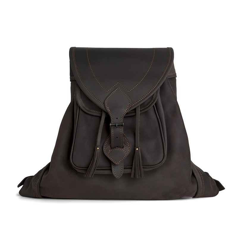Zurrón de dos bolsillos en piel cuero engrasado de gran calidad.