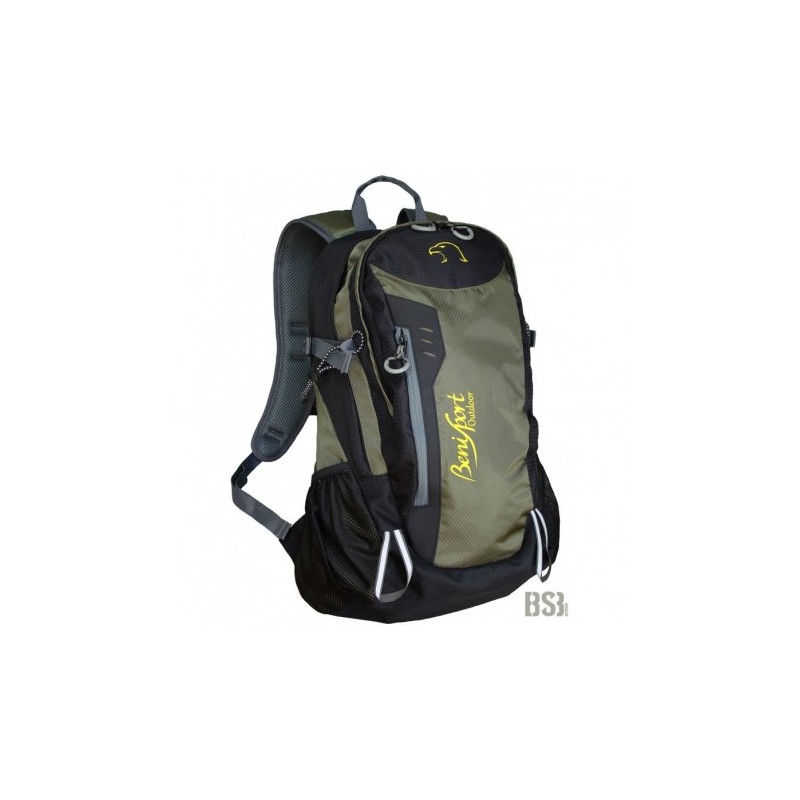 Mochila para múltiples actividades. Compartimentos de gran capacidad con cremallera de gran apertura. Bolsillo delantero con cremallera. Correas laterales para colgar ropa u objetos de tamaño grande. Correas fijas en su exterior para colgar carga adicional. Sistema de respaldo acolchado. Sistema MOLLE en el frontal. Tirantes y cinturón ajustables.