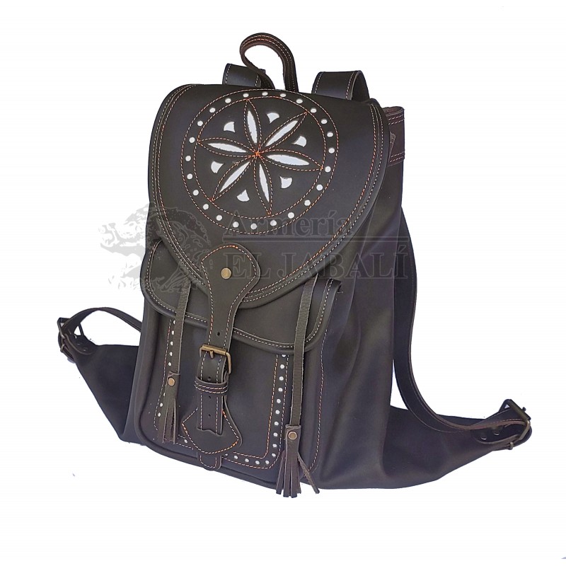 Fabricado en cuero de alta calidad, presenta un llamativo dibujo en su parte frontal.