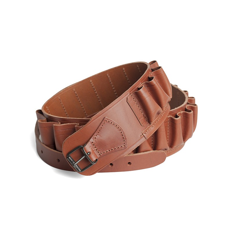 Canana para 25 cartuchos calibre 12 en piel cuero engrasado de gran calidad. Piel tratada de forma natural sin ningún tipo de agentes químicos. Longitud total: 130cm aprox