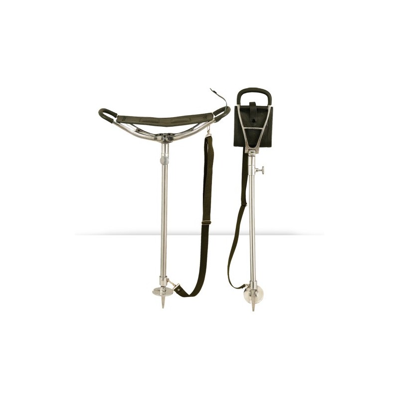 Las puntas de acero ofrecen mayor estabilidad. Disponible en distintas alturas. Diseño tradicional, elegante y funcional. Con cuero de búfalo muy fuerte y confortable. Total sujeción sobre el terreno. Las puntas de acero ofrecen estabilidad aunque el suelo no sea llano. La banqueta queda bien equilibrada al momento. Plegable y con bandolera.