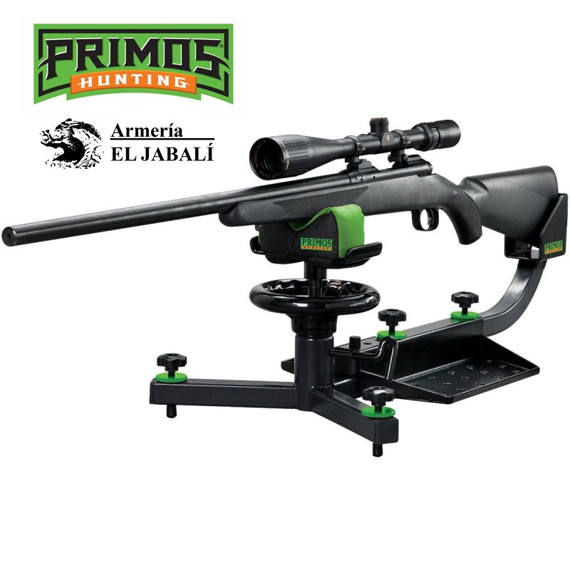 El banco de tiro PRIMOS Group Therapy está construido en acero y tiene altura regulable. Incluye saco de apoyo frontal y placa trasera para cancelar el retroceso.